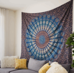 Równie dobrze mandala odnajduje się we wnętrzach etnicznych i inspirowanych kulturami świata – zwłaszcza tam, gdzie widać wpływy Indii, Maroka, Meksyku czy Japonii. W takich przestrzeniach może być obecna jako ręcznie tkany kilim, element ceramiki lub tkaniny, albo jako wzór na zasłonie, abażurze czy pościeli. Mandala wpisuje się w ten klimat jako motyw pełen historii i znaczenia, który nadaje wnętrzu tożsamość.
