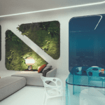 Transparentne powierzchnie nadają lekkości i efektu „unoszenia się” mebli, podkreślając futurystyczny minimalizm.
