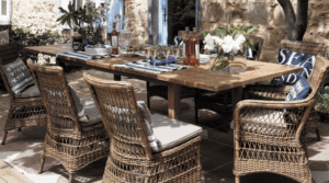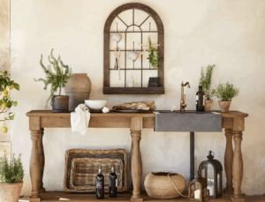 ▪ Drewno w tym stylu jest zazwyczaj surowe, postarzane, często z widocznymi słojami i przebarwieniami – jakby przez lata dojrzewało w śródziemnomorskim słońcu.